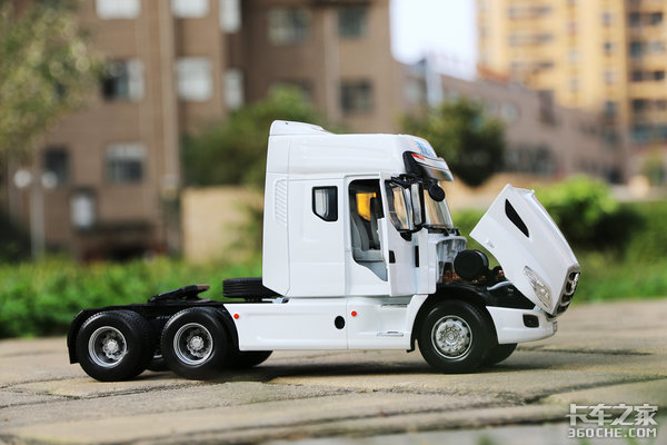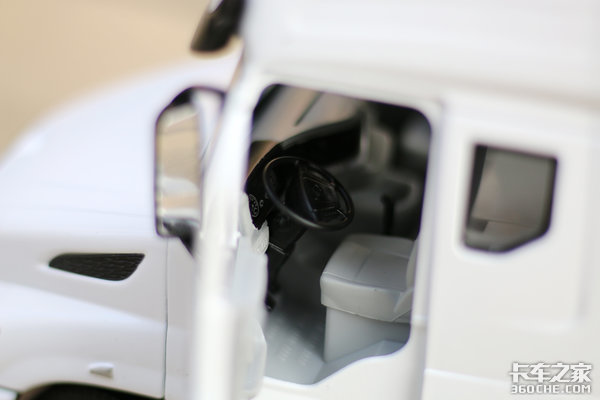 在可玩方面,乘龙T7车模的引擎盖和驾驶室车门都可以打开,并且在接缝的位置做到了严丝合缝,兼顾高度还原、做工精细以及可玩性。