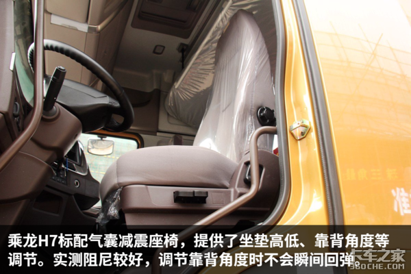 为此我们也和乘龙H7的用户有过交流,有物流公司的卡友认为他们今年新购买乘龙H7,其减震性能会比去年的好上许多,所以整体的舒适性应该是有改善的,有购买需求的卡友可以先去试驾一下。