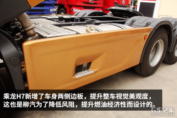 乘龙H7自诞生以来已经历过多次升级和改进,在配置和可靠性方面都有了一定地提升,以今天实拍的双油箱、潍柴430马力车型为例,柳汽在今年陆续优化了车辆减震、微改了内饰,今年中期到店的车型还增加了选装车身两侧边板、全覆盖挡泥板等配置。