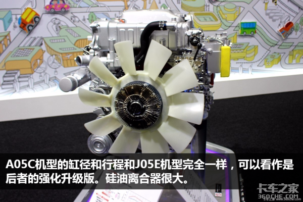 J05E是J08E的四缸版本,两款发动机的缸径行程是一样的。但是A05C并不是A09C的四缸版本,它的本体和J05E保持一致,排量也是一样的,只是进行了双增压的升级改造。