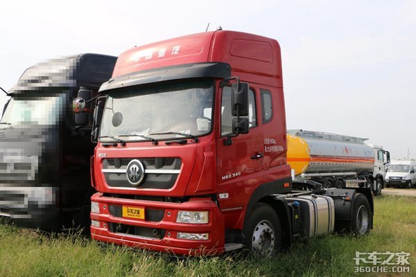 采用双增压机型的重汽斯太尔M5G牵引车,高仿天龙驾驶室。
