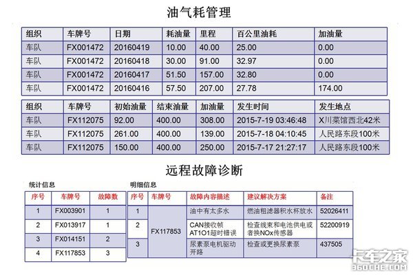 3、远程故障分析、维修保养提醒。当车辆发生故障时,车联网系统会远程分析故障,指导司机排除故障,排除不了的话,会将信息反馈给服务站,还可进行保养提醒。