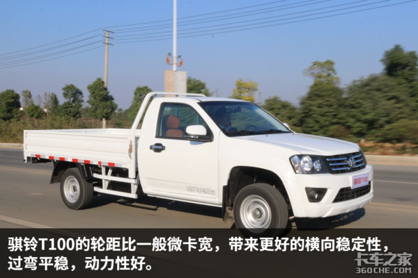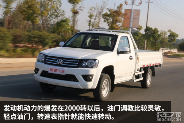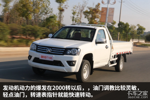 在实际试驾过程中,由于骐铃T100的轮距比微卡宽,带来更好的横向稳定性,并且悬架的支撑足够,过弯很平稳。而在动力方面,主流微卡搭载1.5L的汽油发动机,而T100搭载的是2.2L汽油发动机,在数据上远远领先微卡的动力。这款发动机动力的爆发在3000-4000转以后,油门调教比较灵敏,在日常行驶中,轻点油门,动力输出明显。