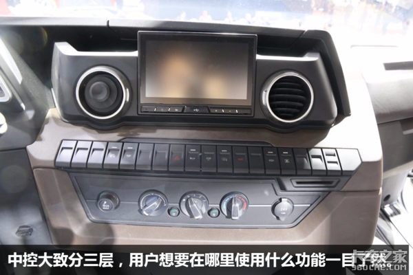 立体的中控设计颇有艺术感,其中的布置也非常讲究。中控大致分为三层,上层为液晶大屏幕和空调出风口,中层为功能性按键,下层为空调控制区域,用户想要在哪里使用什么功能一目了然。