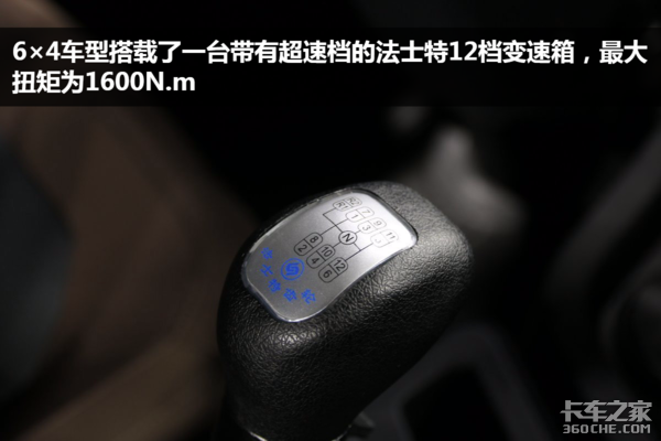 传动方面,江铃威龙6×4车型搭载了一台带有超速档的法士特12JSD160TA 12档变速箱(4×2车型为12JSD220TA),最大扭矩为1600N.m。