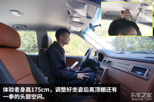 骐铃T100S作为高端城市物流车的同时也是一台双排座的皮卡,驾驶室空间的表现也不能忽略,前排座椅在调整好坐姿后,体验者还有一拳的头部空间,而后排座椅同样也能获得一拳的头部空间以及三指宽的腿部空间,即使坐满五人也不会觉得压抑,中短途乘坐完全没问题。