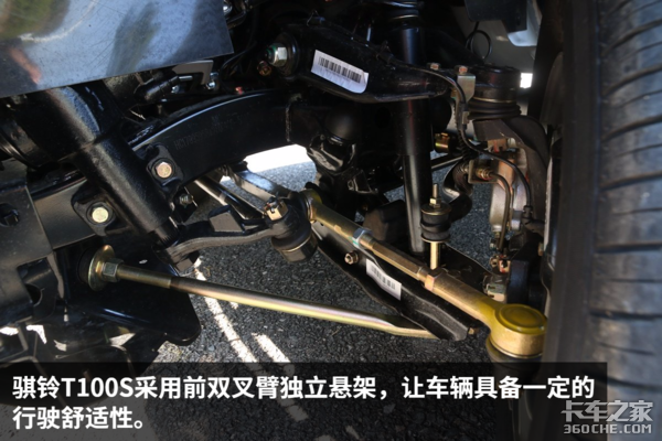 骐铃T100S在底盘设置方面也是最大限度的做到既能保证一定的乘坐舒适性又能拥有不俗的承载能力。T100S采用的是船型大梁结构,能更加方便的布置悬架结构,同时驾驶室与货厢的布置也更灵活,把空间的利用率放到最大。