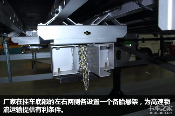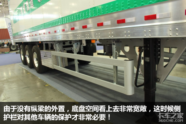 据厂家人员介绍,原来,这台挂车的纵梁没有消失,而是采用了内置的形式,这种设计没有损失有效容积,也看起来非常美观。