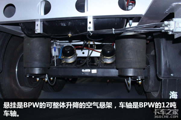此车的另一特点是“穿”了一身名牌,约斯特支腿、BPW的空气悬架和12吨车轴,铝合金轮圈搭配大单胎的形式也吸引不少卡友驻足观看,威伯科的ABS更是增加了行车安全。