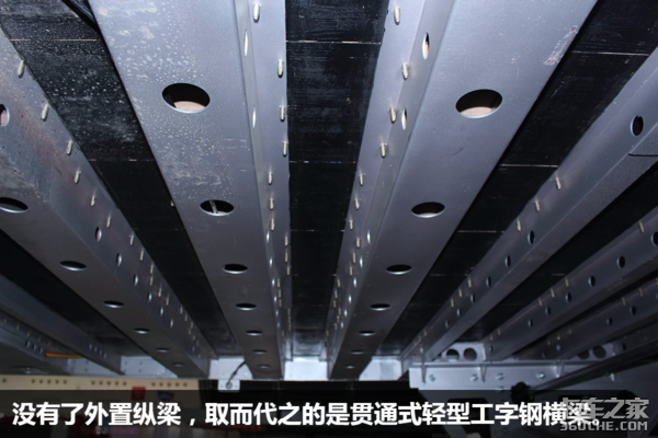 纵梁虽然内置,但是底盘的承重能力还要得到保证,而贯通式工字钢横梁则比焊接式衡量强度更高。
