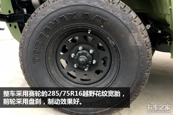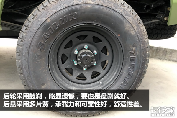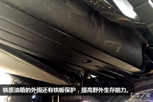 这款皮卡采用了非承载车身,有贯穿前后的大梁。四驱和宽大的越野轮胎都是它强悍的越野能力的保证。