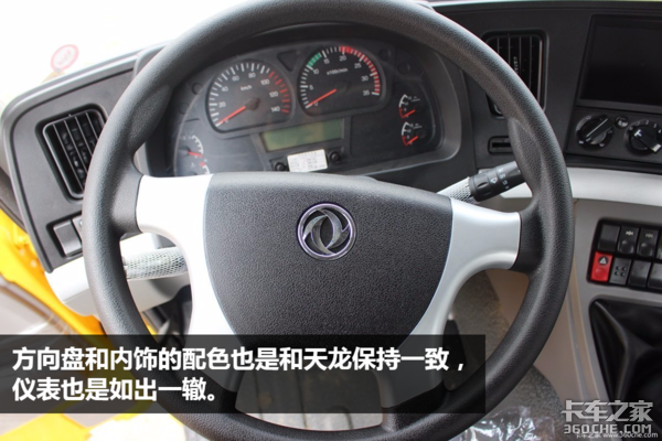 这款车在内饰方面,也是和经典的东风天龙保持一致,并没有像“重汽牌天龙”那样随意篡改经典车型的内饰颜色。
