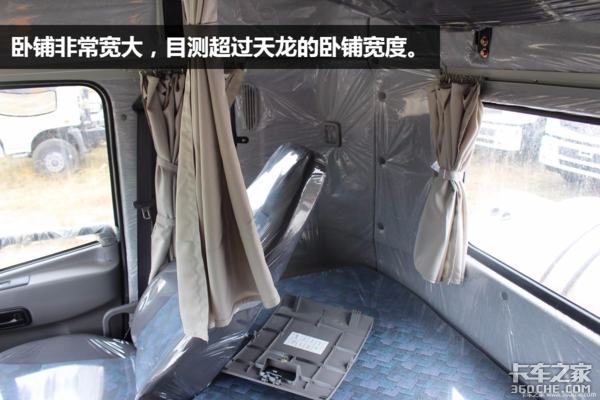 这款车型是东风特种车身厂出品的驾驶室,内饰外观和天龙很像,但是大灯造型和一些细节方面有原创的元素,卧铺也更宽一些。