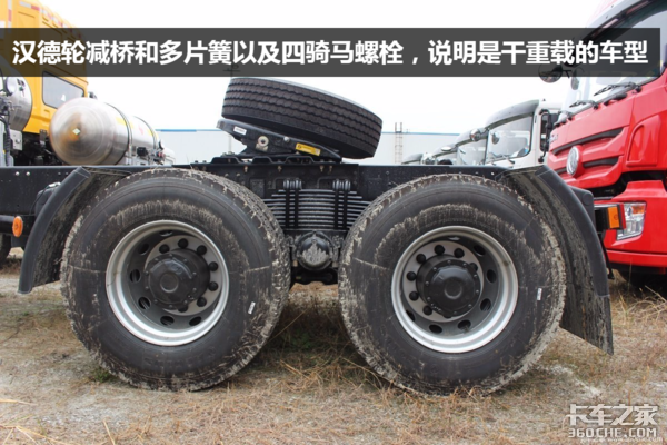 这款车的底盘采用低转速的380马力潍柴12升发动机配大速比轮减桥,还带液力缓速器。很明显它是用于山区重载运输的车型。