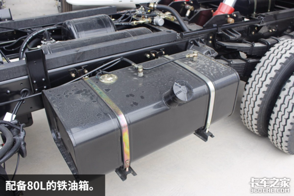 是不是很奇怪为什么货箱里面装有三根钢板,据工作人员介绍到,这款车的公告有两种车辆高度尺寸,实拍的这款栏板高600mm的车型为地下室专有车型,而如果用户不是主要在地下室使用,厂家还提供栏板高800mm的车型,因此随车附带了加高的栏板,让用户可以自行决定货箱高度。
