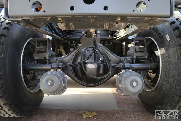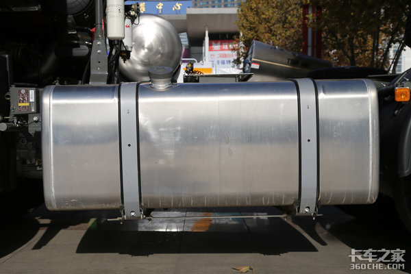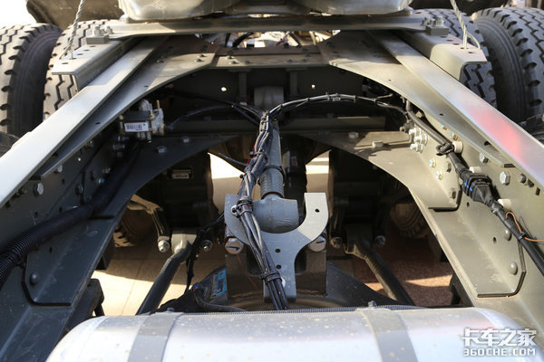 这款车采用“I”型推力杆,各功能配件之间的连接线都进行了包扎,防止在行车或者维修时线缆遭到损坏。600升大容量油箱,即便是中长途的运输也不在话下。为了实现轻量化,该车的储气筒和油箱均为铝合金材质,整车质量仅8.8吨。