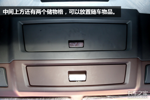 头顶的四个储物格,基本上就把整个驾驶室所有的储物空间都占据了,存储空间非常大。