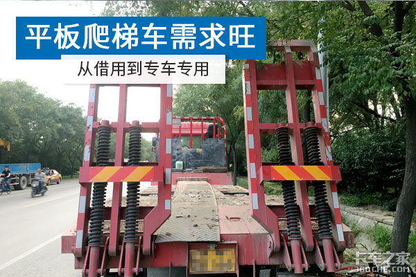 专业的平板爬梯车是厂家针对挖机的运输特点进行了有针对性的强化设计,具有使用方便,重心低,稳定性好,经久耐用的优点。但缺点也是很明显的,在淡季的时候,很难转型运输其他货物。