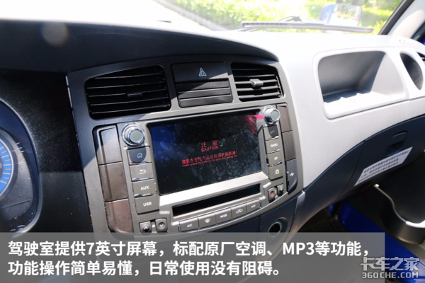 驾驶室配置亮点不算太大,大概是考虑到价格因素,7英寸屏幕在这款窄体版车型上并没有标配,但该有的功能都没有缺席,保证用车舒适性没有问题。