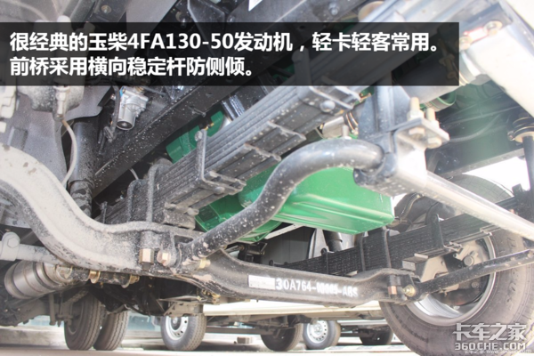 东风天来厢货采用了轻卡和轻客常用的玉柴4FA发动机,130马力应对城市物流还算不错。为了降低重心和装货平台,它的底盘取消了副簧,采用低重心设计思路。