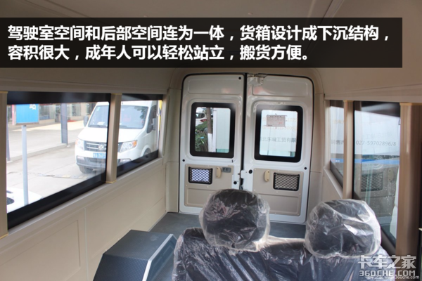 因为外形方正,加上低重心的设计,货箱内部设计成下沉的平台,所以东风天来的容积相当大,比高顶的得意和全顺等VAN类车型都要大。