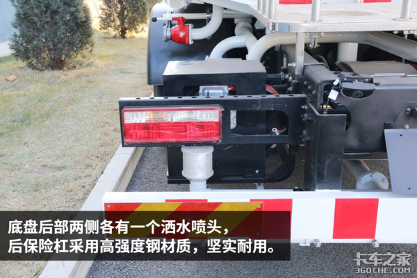小结:T10属于标准的重型洒水车,前四后八的底盘结构,再加上17.5立方米的轻量化水罐,配上前后喷水、洒水设备,让车辆在工作的时候更加方便、快捷。另外为了环卫工人观察车辆四周的情况,在车辆的侧面、后部都加装了高清摄像头,既能保证安全,又能方便查看车辆工作情况。
