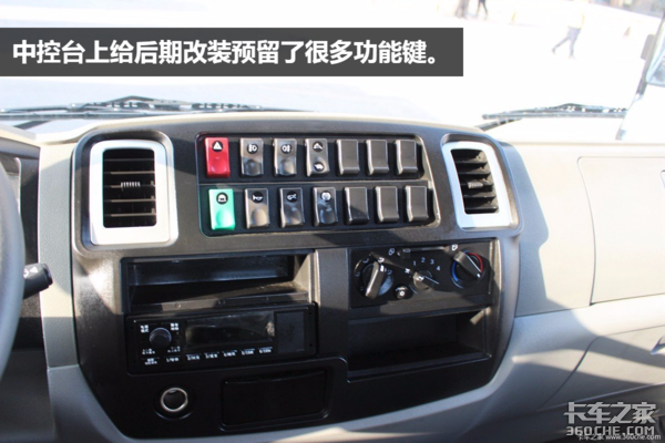 这个新款福瑞卡驾驶室的空间很大,细节设计合理,驾乘感觉非常舒适,功能件操作很顺手。