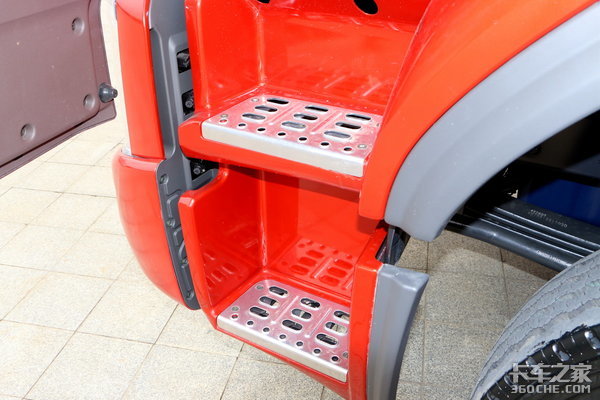乘龙H5的登车踏板为两级金属防滑镂空设计,在保证踏板结实耐用的同时,还可以给驾乘人员提供刮掉鞋底泥水的便利。