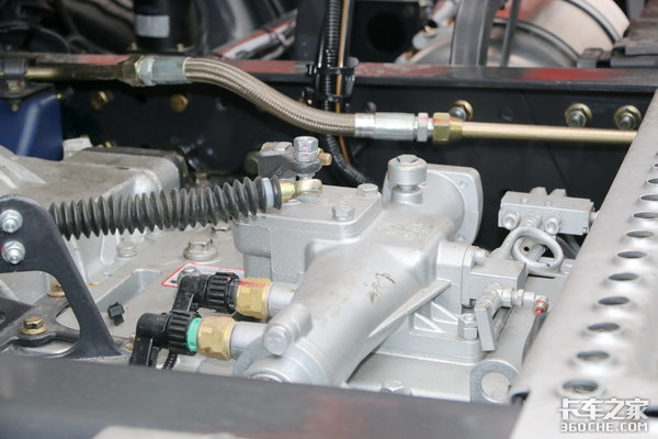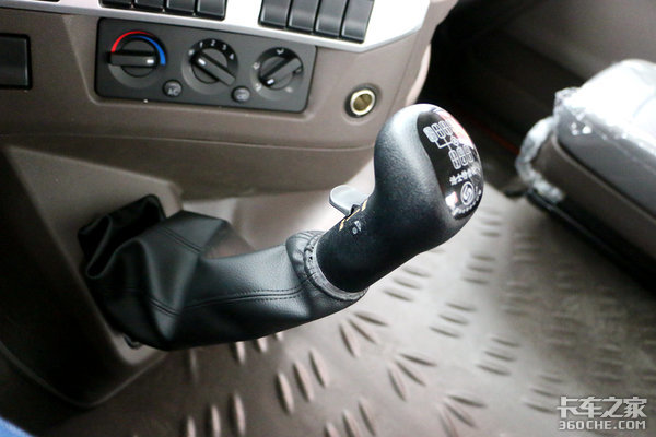 前面提过,这款车的变速箱为法士特的12JSD180TA型号,加长的换挡杆布置在工作台的下方,替代过去老旧的挡杆布置方案,将更多的空间让出来给驾驶员。