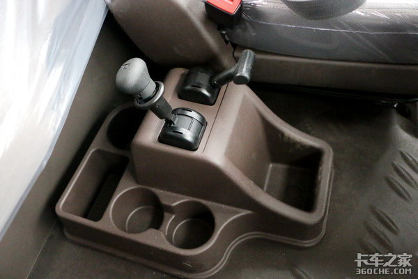 断气刹、挂车刹拉手就在主驾座椅右侧,并且杯座就围绕在旁边,放三个水杯以及一些其他物品毫无压力。