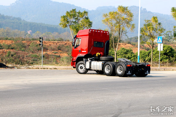 展车选用的轮胎是成山牌12R22.5型号胎。经过简单计算,这台乘龙H5在发动机转速为1100-1500转时,车速能够达到77-106km/h,完全符合快速标载物流运输的需求。