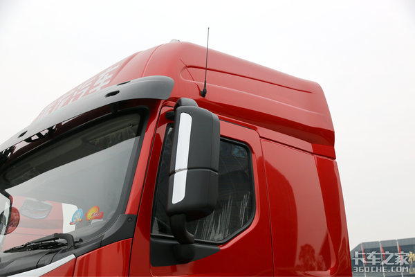 驾驶室侧面线条比较流畅,车门包覆了第二级登车踏板,既美观又能减少行车过程中的风阻,提高燃油经济性。