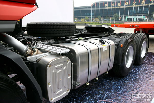 600L的铝合金大油箱既能为这款车保证续航里程,又能减轻车身自重,按平均32-35L/100km的油耗计算,这款车加满一箱油也能够轻松行驶1700公里以上。还可以选装1000L油箱,实现更长续航里程。