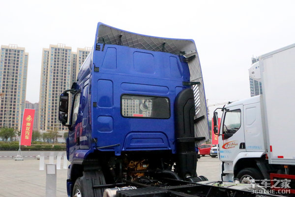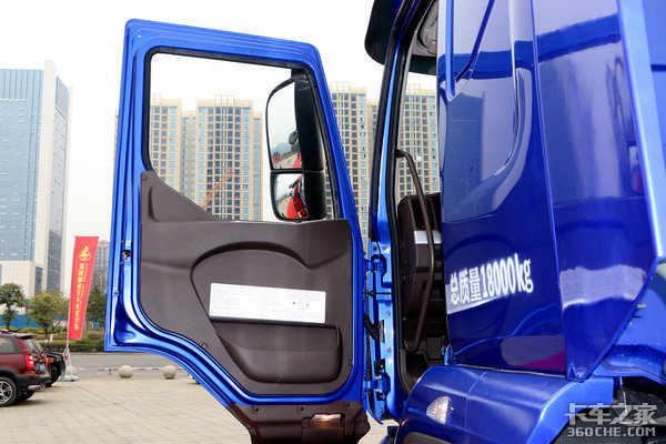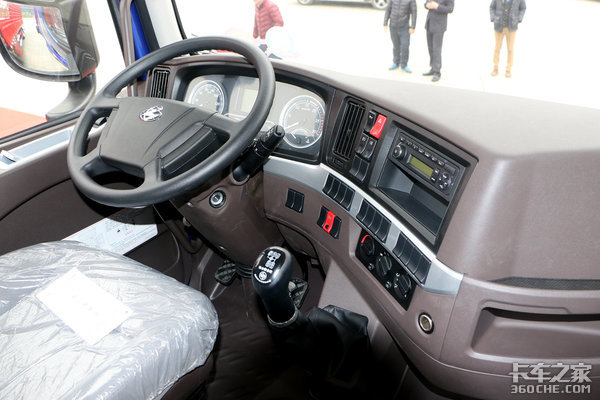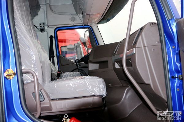 从这个角度能够看到乘龙H5的平地板驾驶室,整体来看,驾驶室还是非常宽敞的,驾乘人员在驾驶室内交换、走动都很轻松。