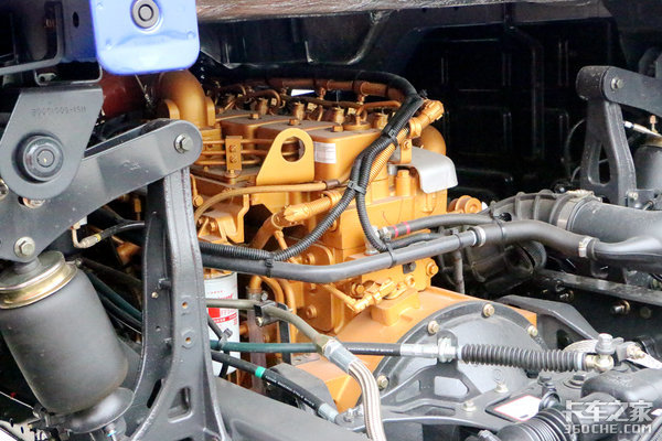 动力系统方面,乘龙H5大单桥搭载的是一台东风康明斯ISB220 50发动机,具有220马力的动力,最大扭矩为800N.m,发动机外观涂装迎合了柳汽乘龙黄金动力的理念,喷涂成金色,非常漂亮。