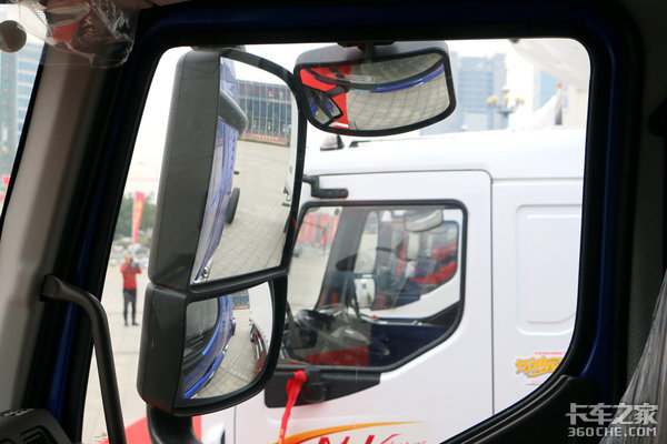 一体式后视镜包括了主后视镜和广角镜两块镜子,副驾驶车门上的盲区下视镜和右前方的下视镜,能够进一步减小驾驶员的视野盲区。