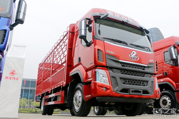 载货车方面,乘龙H5有一款非常亮眼的车型——4x2高顶双卧6米8仓栅运输车。这款车在柳汽年会上首次亮相,该车搭载玉柴YC6JA220-50发动机,输出220马力的动力,匹配法士特8JS85C变速箱,结构为高低挡,后桥则是3.909速比的9吨桥。