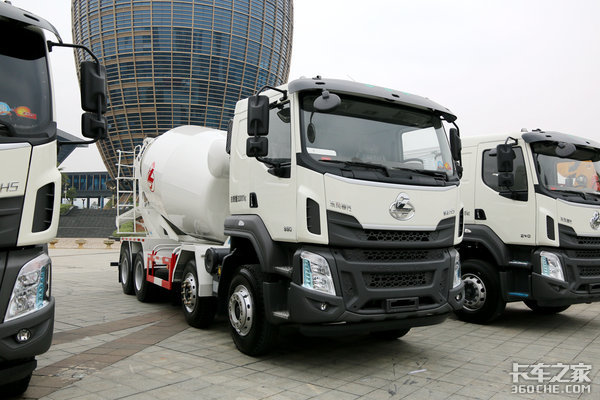 在混凝土搅拌专用车型中,乘龙H5同样也有不俗的表现,在年会上展出的乘龙H5混凝土搅拌车为8x4驱动形式,搭载玉柴YC6L330-50发动机,输出330马力的动力,变速箱为法士特10JSD140B型号,后桥为并装双轴153桥,速比5.143。