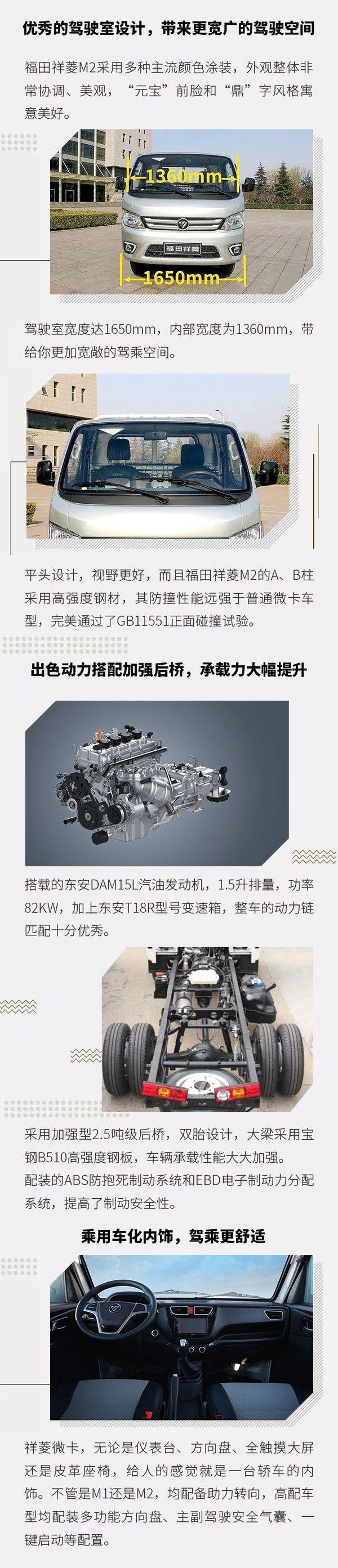 平头设计,视野更好,而且福田祥菱M2的A、B柱采用高强度钢材,其防撞性能远强于普通微卡车型,完美通过了GB11551正面碰撞试验。