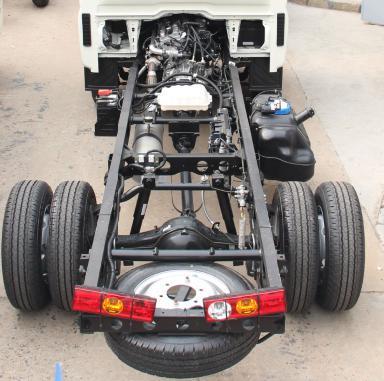 采用加强型2.5吨级后桥,双胎设计,大梁采用宝钢B510高强度钢板,车辆承载性能大大加强。