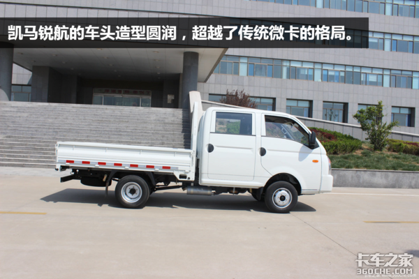 【卡车之家 原创】随着城镇化的进程加速和普通轻微卡的卡友生活水平的提高,介于传统微卡和轻卡之间的跨界车型成为大势所趋。特别是用户年轻化的发展,对轻卡的舒适性和外观提出了很高的要求。作为传统重载型轻卡的凯马汽车,推出了新款的锐航车型,即将正式开售。下面我们先来看看: