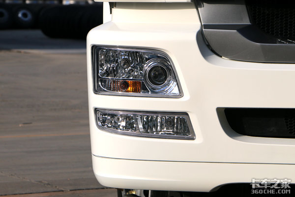 水晶大灯带透镜设计,聚光效果更好,单独看豪瀚J6G的大灯组,有点德国曼的感觉,大灯集成了转向灯和远近光灯,下面的长条形灯组则集成了雾灯和示廓灯。