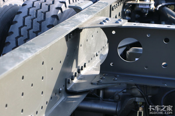 因为这款豪瀚J6G质轻版载货车主要针对标载高速运输市场,所以对承载性的需求没有那么的特殊,只要能够满足正常标载需求即可,所以这款车采用了单层车架、局部加强的设计,一方面能够降低自重,另一方面在一些集中载荷的部位能够保证产品质量。