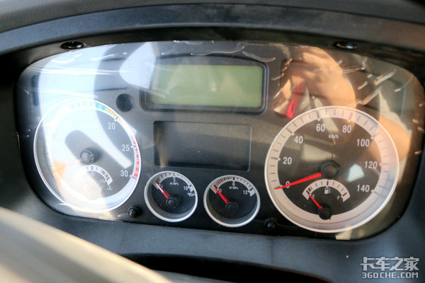 仪表盘则是比较中规中矩,左边是转速表和水温表,右边是车速表和油量表,中间上方时液晶显示屏,下方是两个气压表,读数很清晰,方便驾驶员行车过程中了解车辆情况。