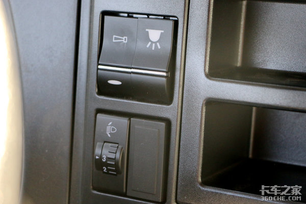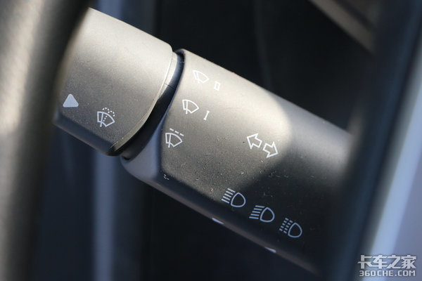 与大多数卡车不同的是,豪瀚J6G的左侧组合开关不光有远近光灯转换功能,刮水器和玻璃洗涤开关也集成在左侧组合开关上。