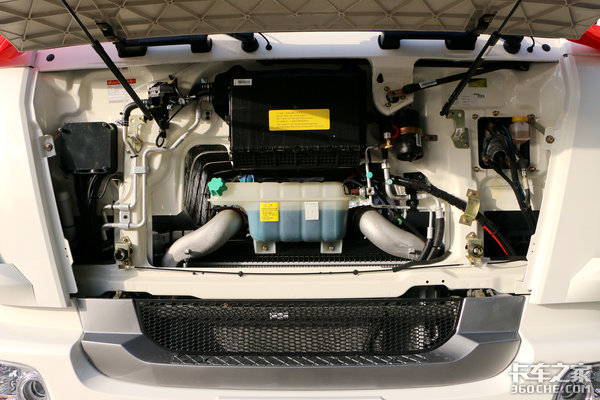 另外,打开前面罩,豪瀚J6G质轻版的线束非常规整,中冷器前面标配防虫网,不会堵塞中冷器,更加有助于发动机散热。