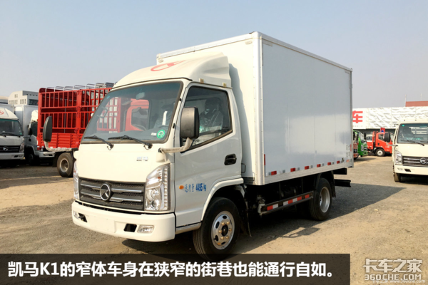 【卡车之家 原创】凯马作为国内轻卡界的国民车,一直以生产接地气的轻卡为己任。卡友们喜闻乐见的车型都有:重载轻卡、微卡、小卡等等。目前凯马的车型正在从重载型和农村运输车型向物流配送型和城镇运输车型转化。凯马K1是一款经济实惠的窄体运输车型,车身窄底盘强,在保证灵活性的同时延续了凯马车一贯的优秀承载力。