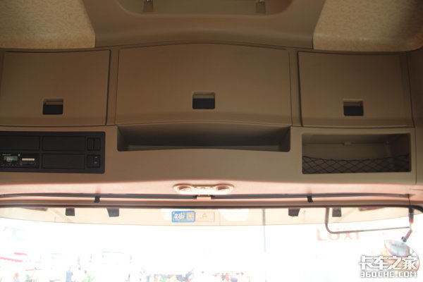 驾驶室上方带有多个储物空间,方便驾驶员对行李物品的归置。副驾驶上方的储物格带有防护网,可以有效防止车辆运行过程中物品坠落对乘员的伤害。