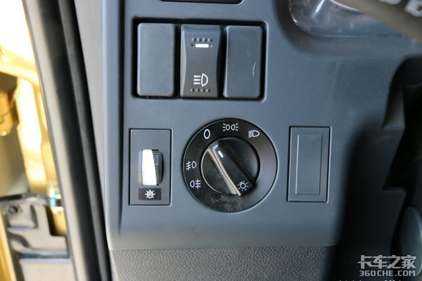 大灯开关设计在仪表盘左下侧,使用的是旋钮式设计,驾驶员操作更加方便。