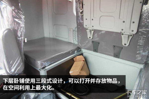 柳汽乘龙H7的驾驶室不仅内饰简约略显精致,而且在空间利用率上也是下足了功夫。下层卧铺既可睡觉休息,也可以通过折叠变成餐桌,实用性上加分。
